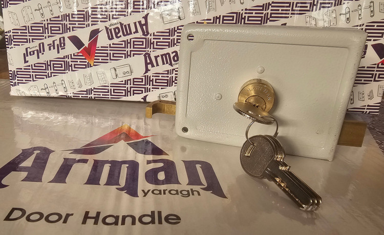 جنس بدنه قفل، فلزی و ورق ۲ میباشد که بدنه خارجی به صورت رنگ کوره ای و ورق پشتی آبکاری نیکل کروم میباشد تا از زنگ زدگی جلوگیری کند